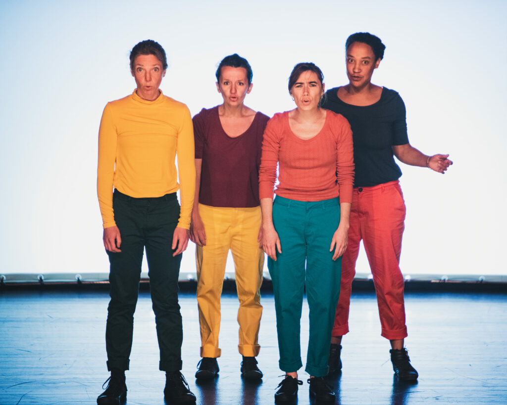 Elles sont quatre sur scène, énergiques et enjouées, tantôt ici, tantôt par-là, parfois en chœur, toujours en mouvement.